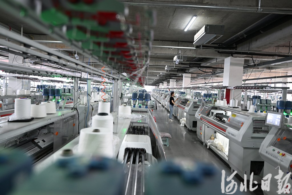 近日,清河县新华·慈星羊绒针织数字化共享工厂内,工人在利用一线成型电脑横机加工羊绒服饰产品。河北日报记者赵永辉摄